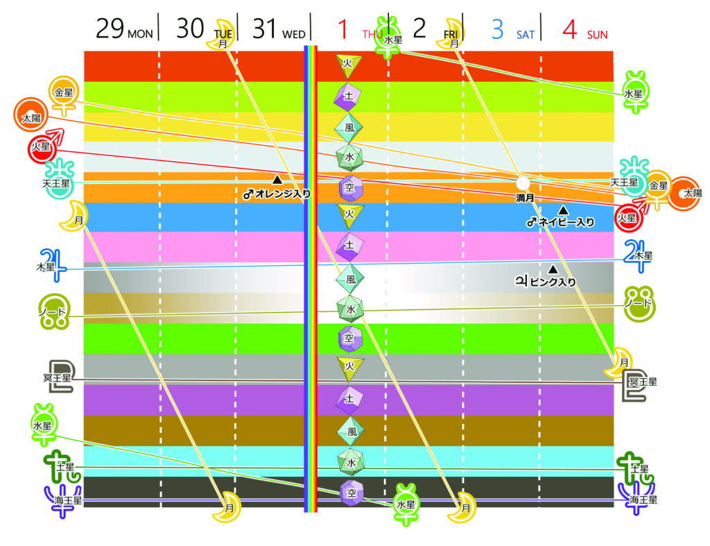 冥王星の通過中。2日から4日にかけて水星が通過し、4日からは火星が入ってきます。